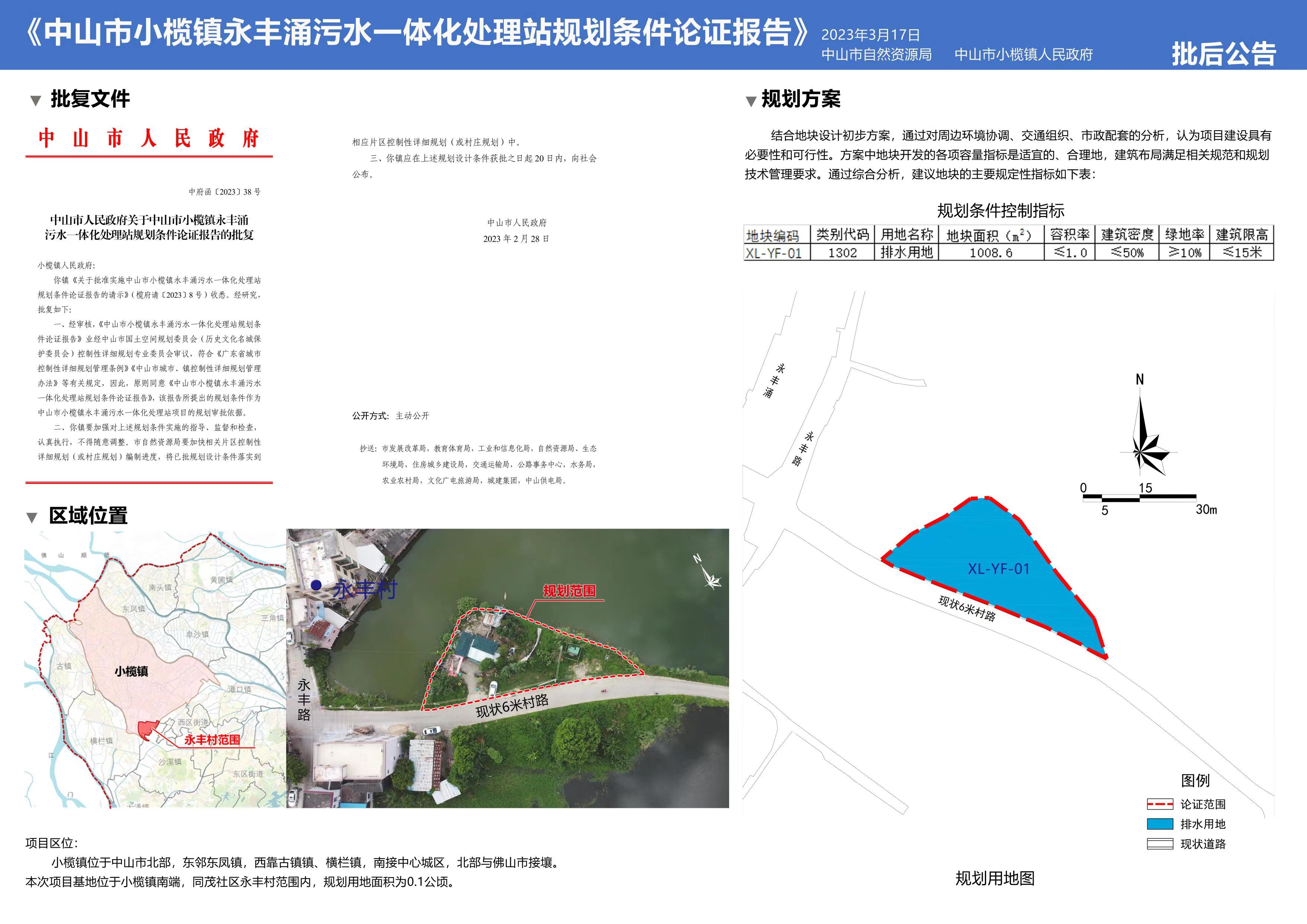 附件:1.《中山市小榄镇永丰涌污水一体化处理站规划条件论证报告》批后公告