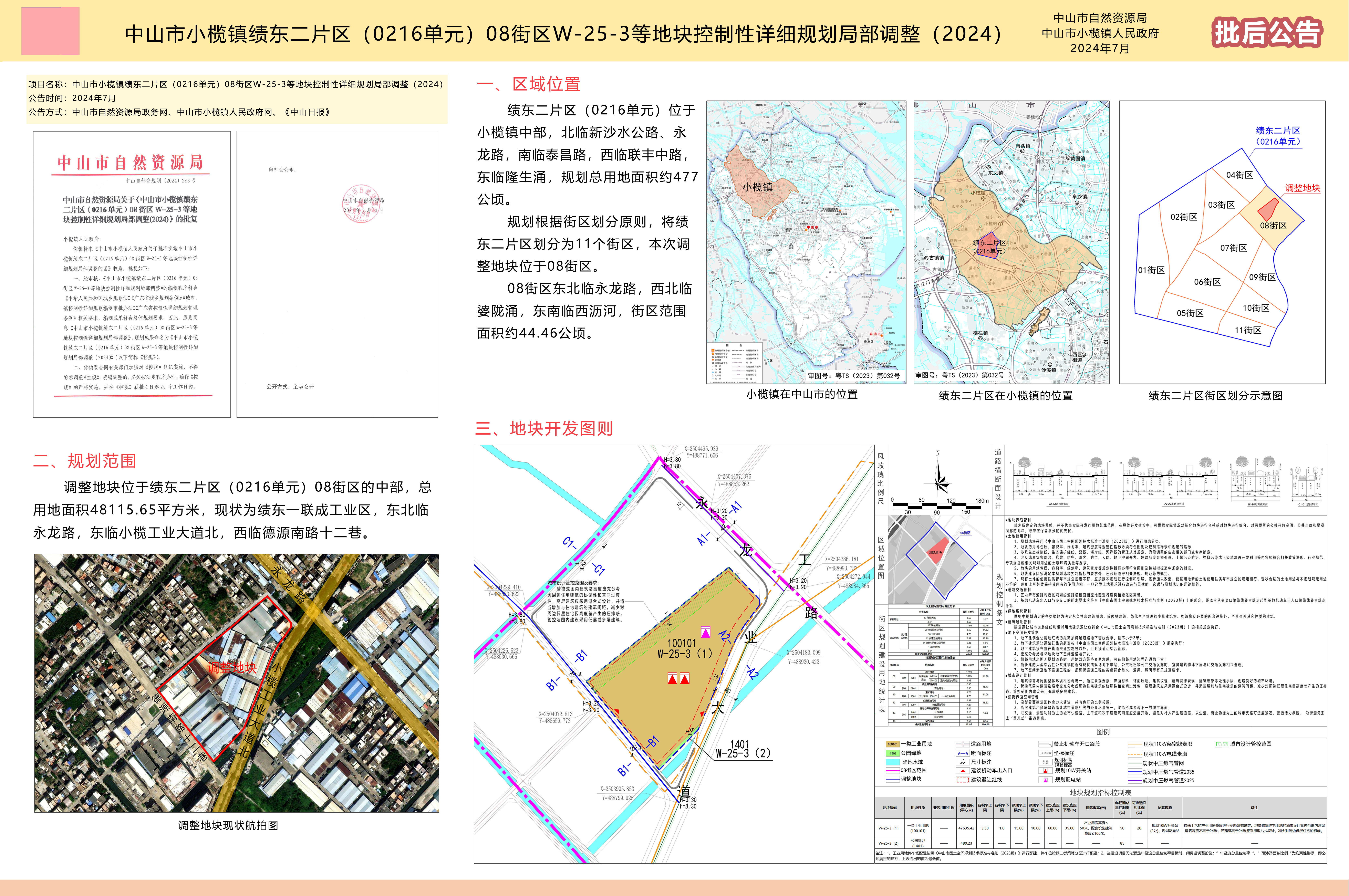 附件:《中山市小榄镇绩东二片区(0216单元)08街区W-25-3等地块控制性详细规划局部调整(2024)》批后公告