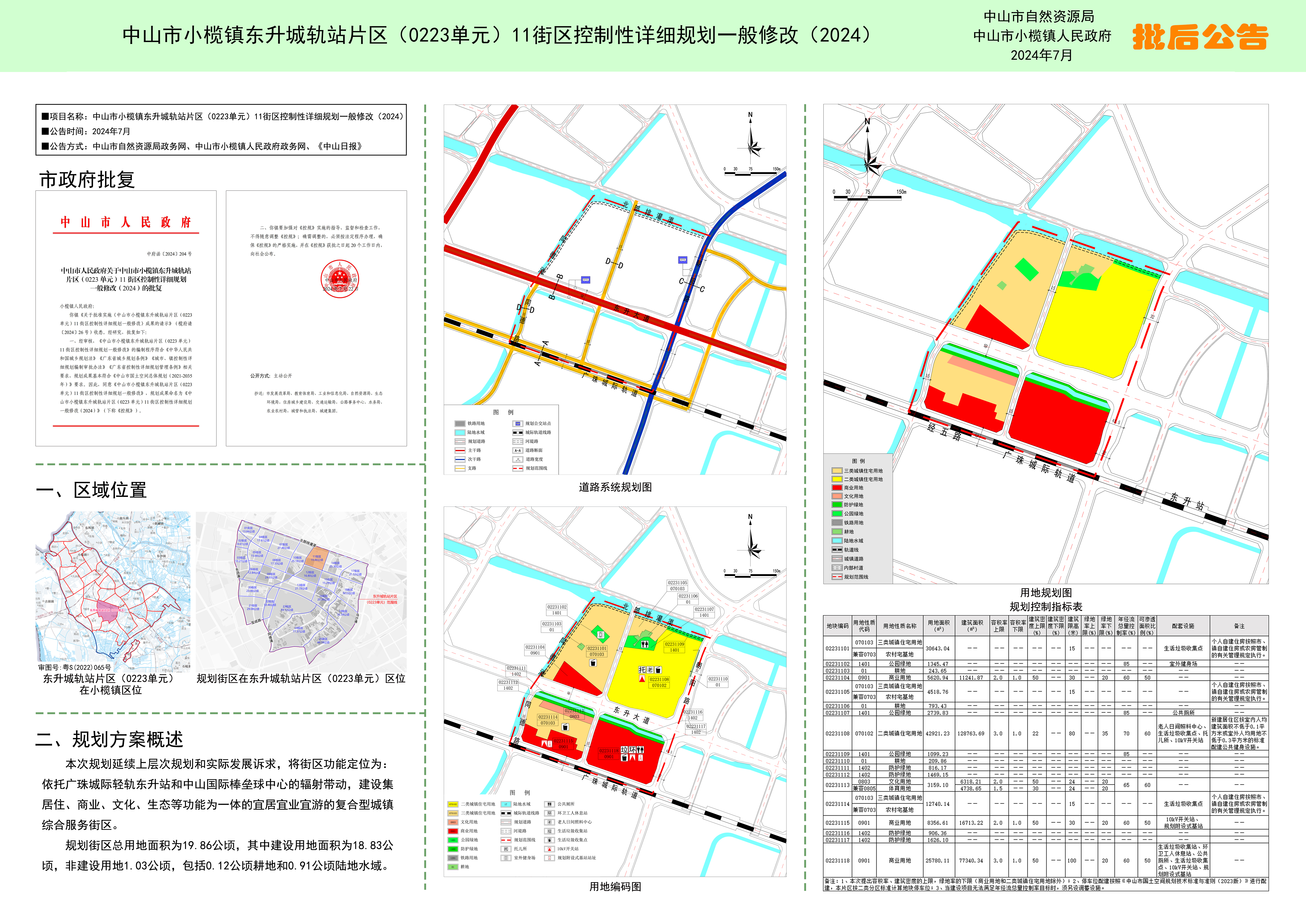 附件:《中山市小榄镇东升城轨站片区(0223单元)11街区控制性详细规划一般修改(2024)》批后公告