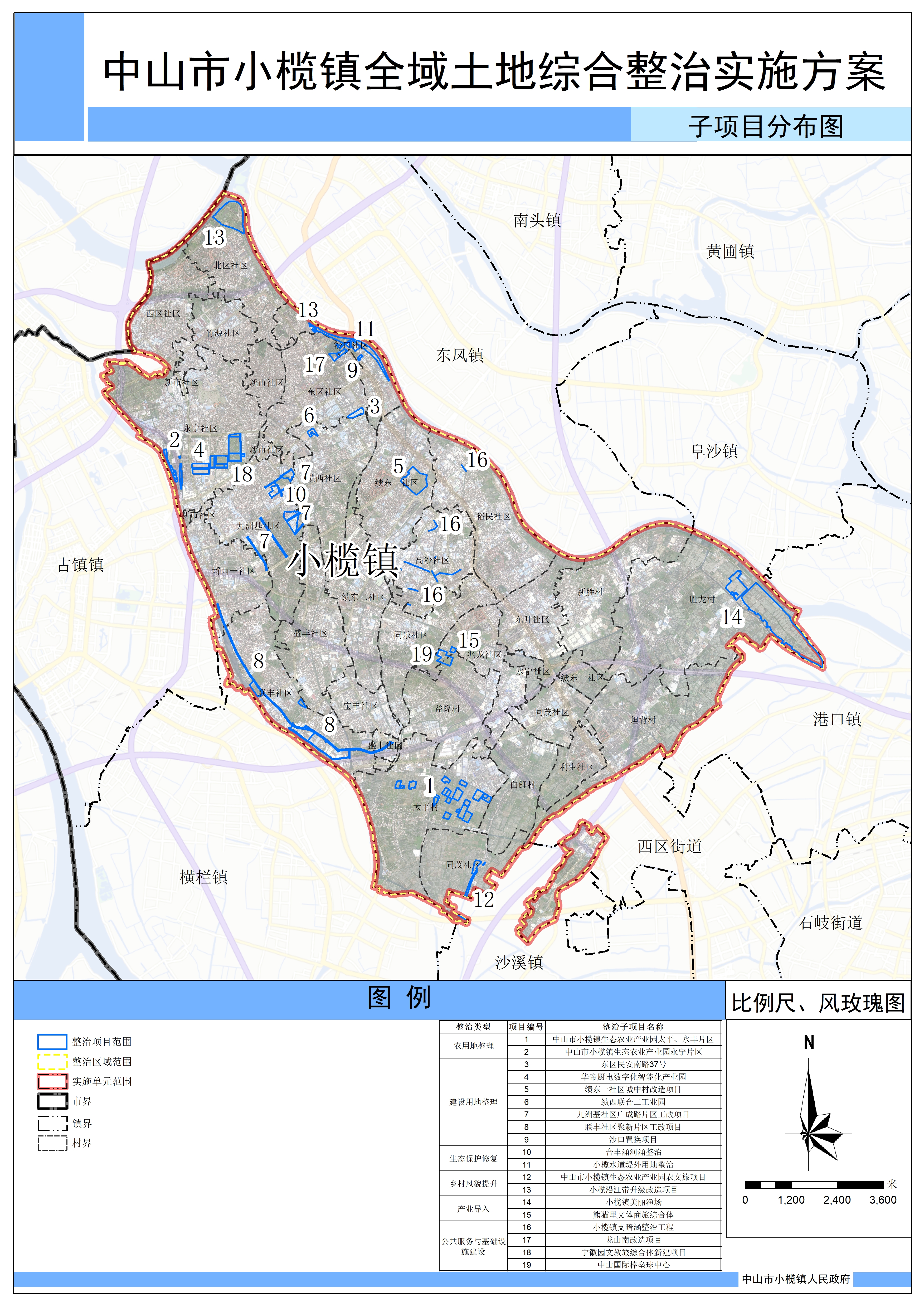 附图:中山市小榄镇全域土地综合整治实施方案-子项目分布图