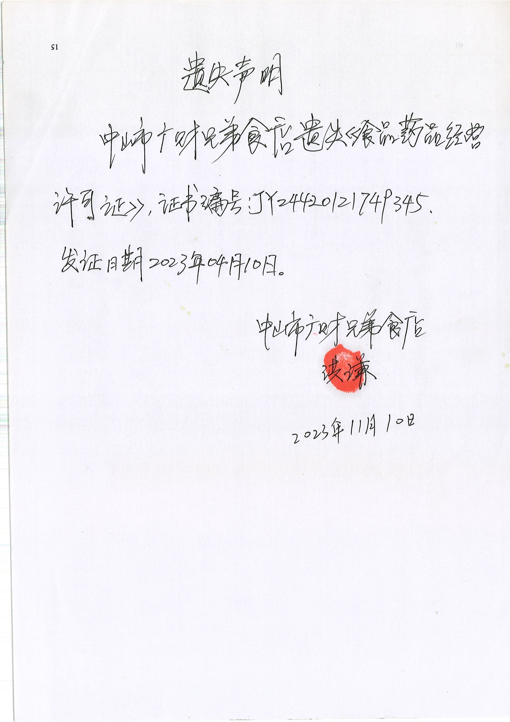 食品药品经营许可证遗失声明(中山市广财兄弟食店)