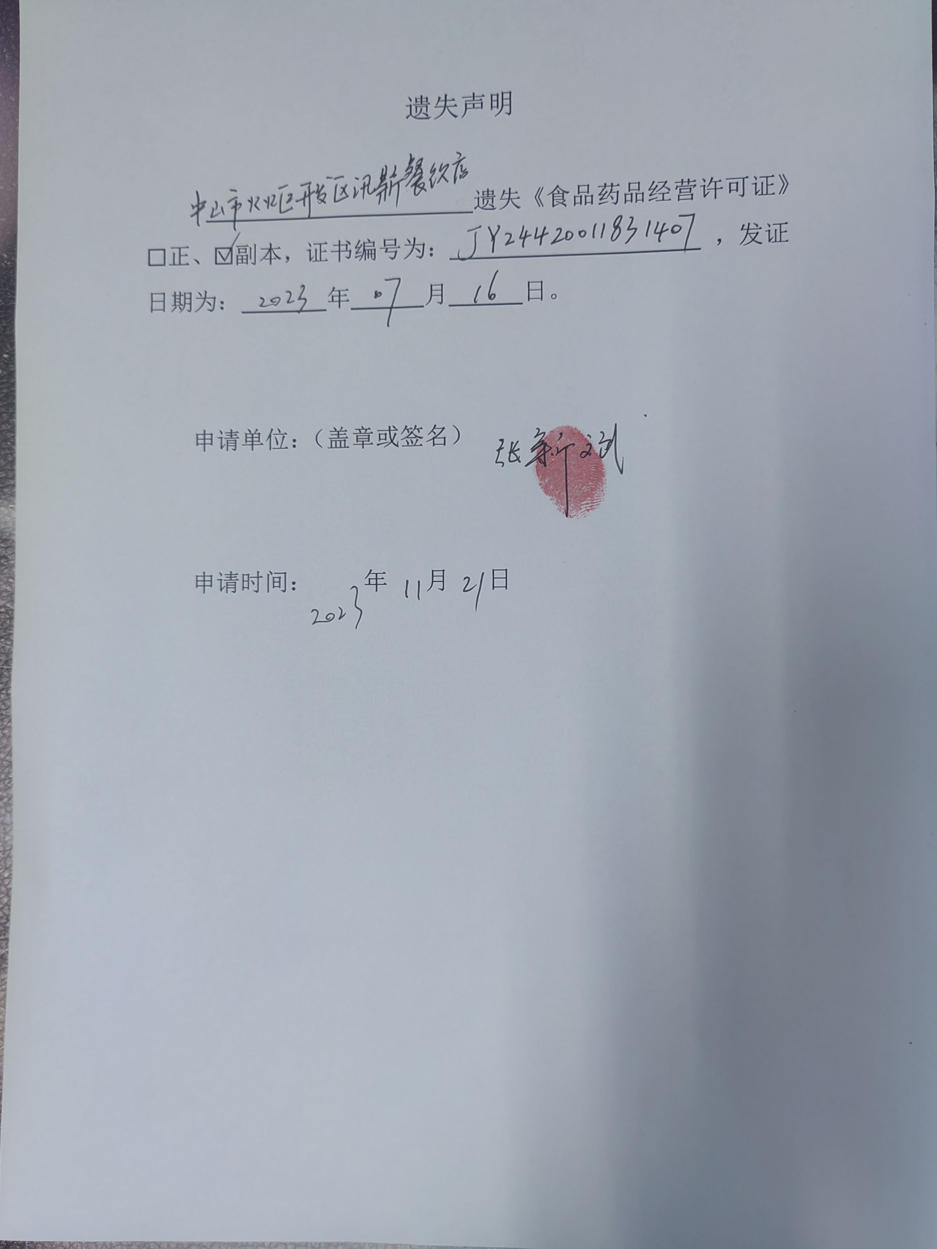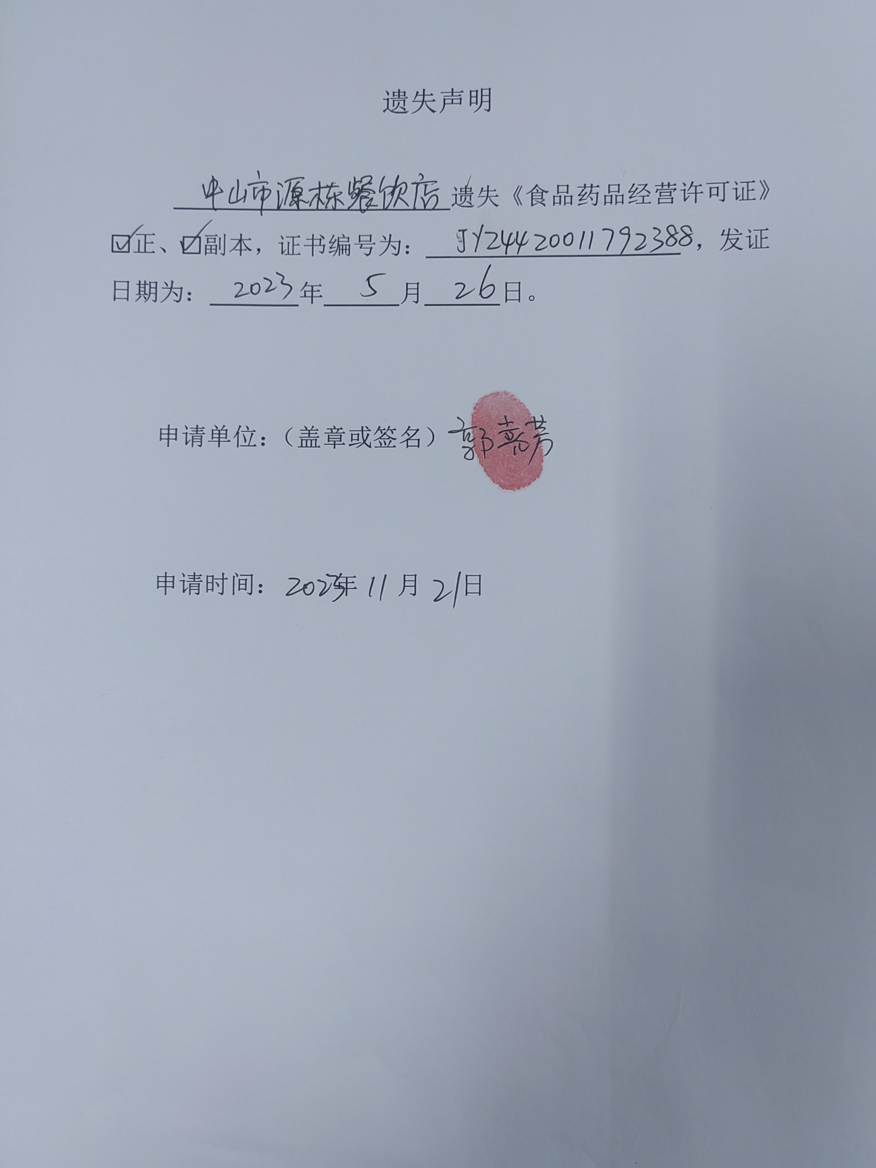 食品药品经营许可证遗失声明(中山市源栋餐饮店、中山火炬开发区江朝饮食店、中山市火炬开发区讯鼎餐饮店)