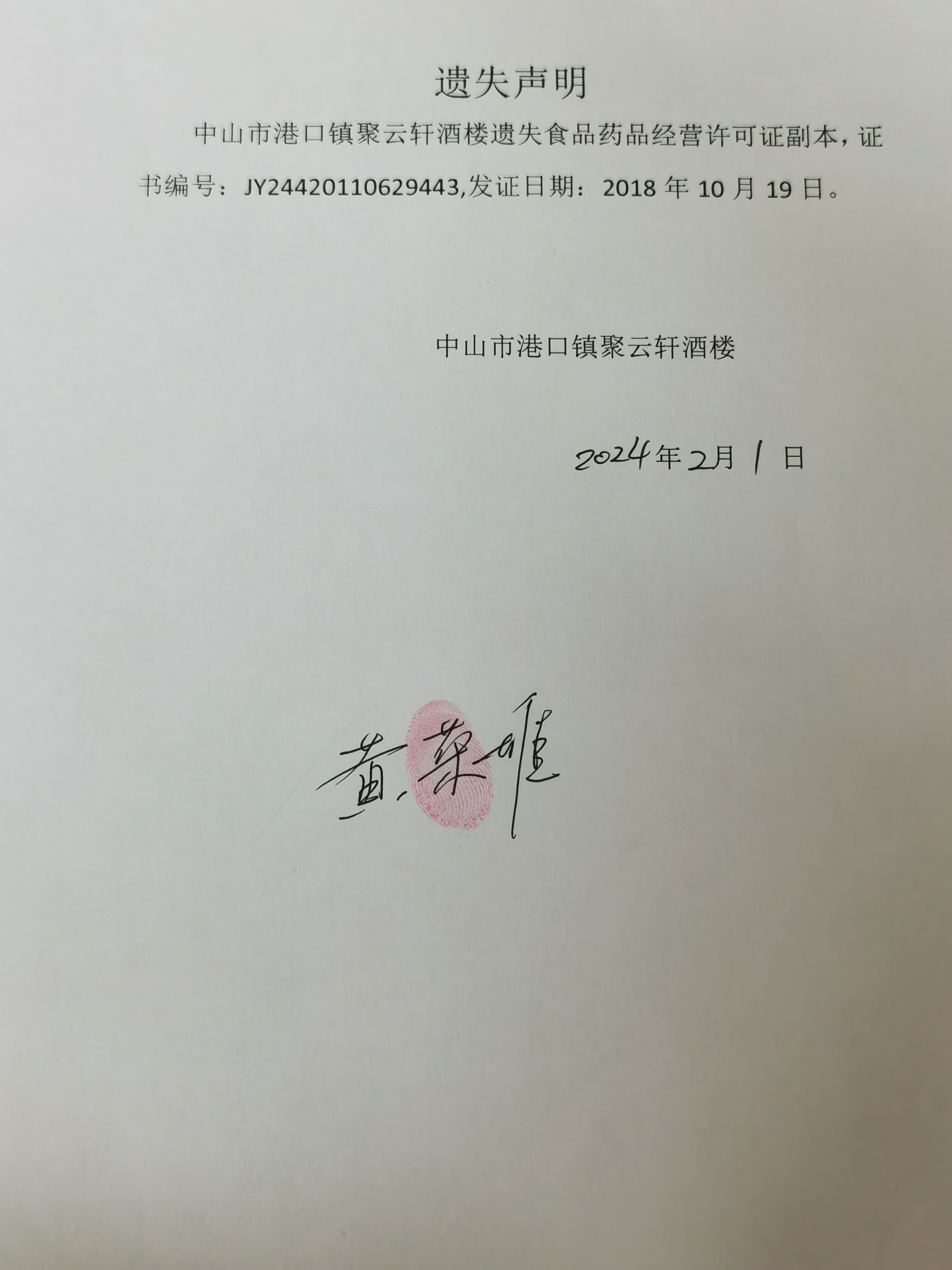 食品药品经营许可证遗失声明(中山市港口镇佳昌饭店、中山市港口镇万家福百货店、中山市港口镇聚云轩酒楼)