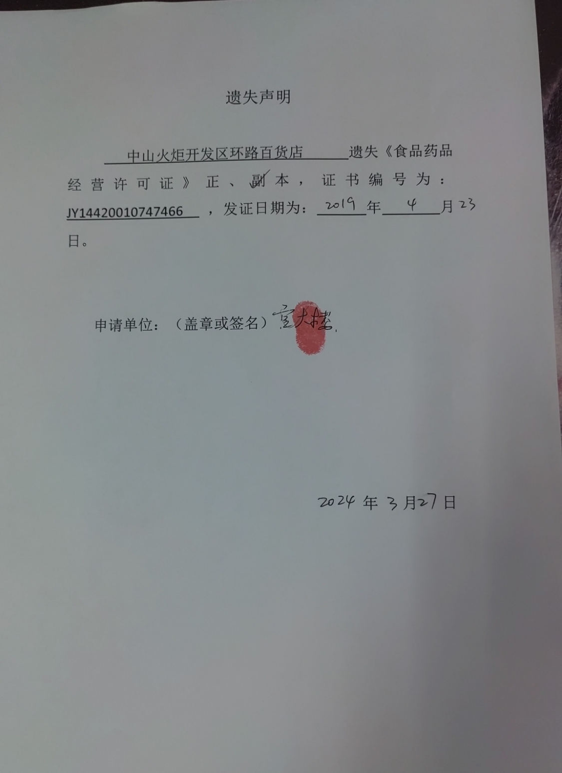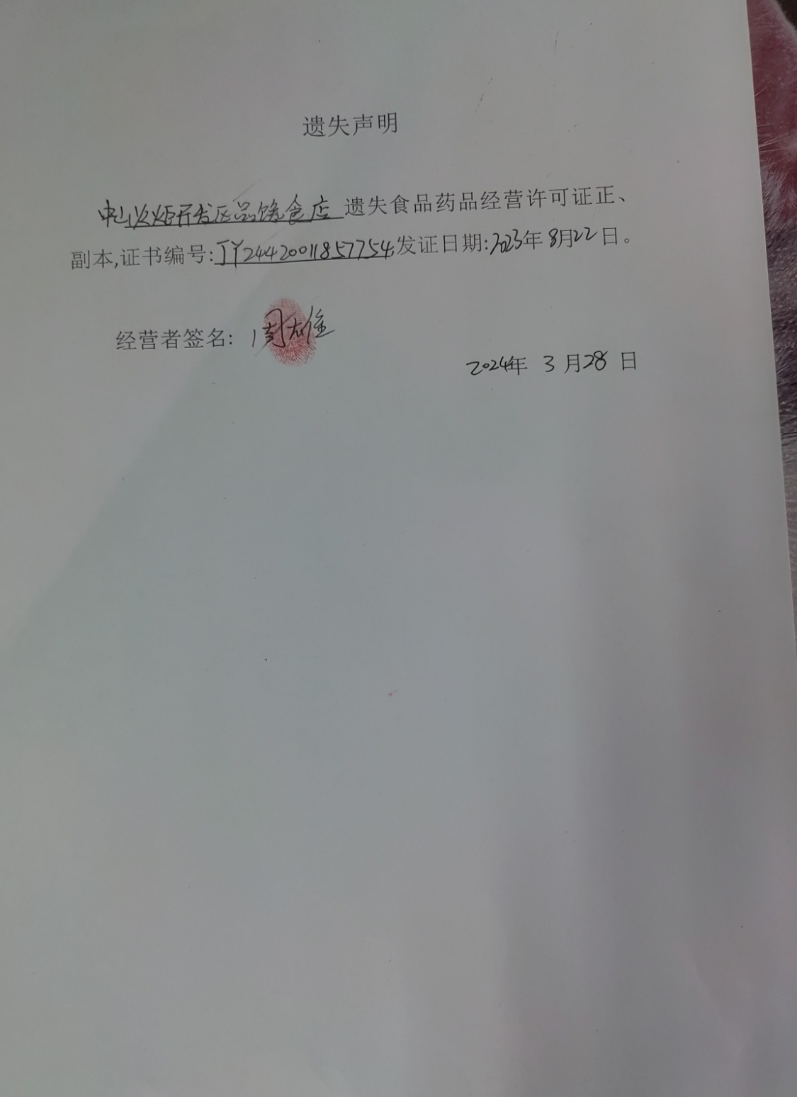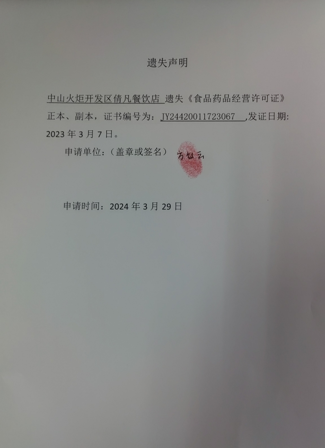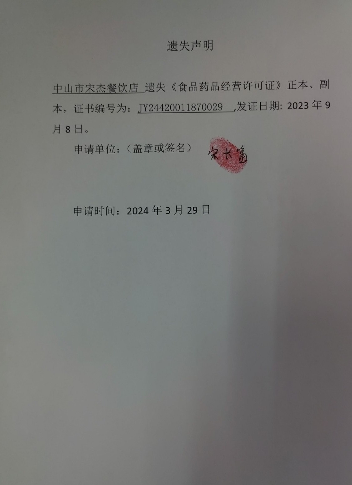 食品药品经营许可证遗失声明(中山市宋杰餐饮店、中山火炬开发区倩凡餐饮店、中山火炬开发区环路百货店、中山火炬开发区蔡烈伟餐饮店、中山火炬开发区品馋食店)