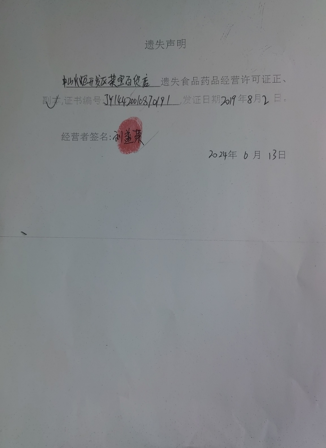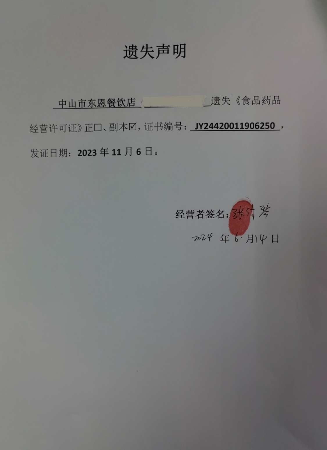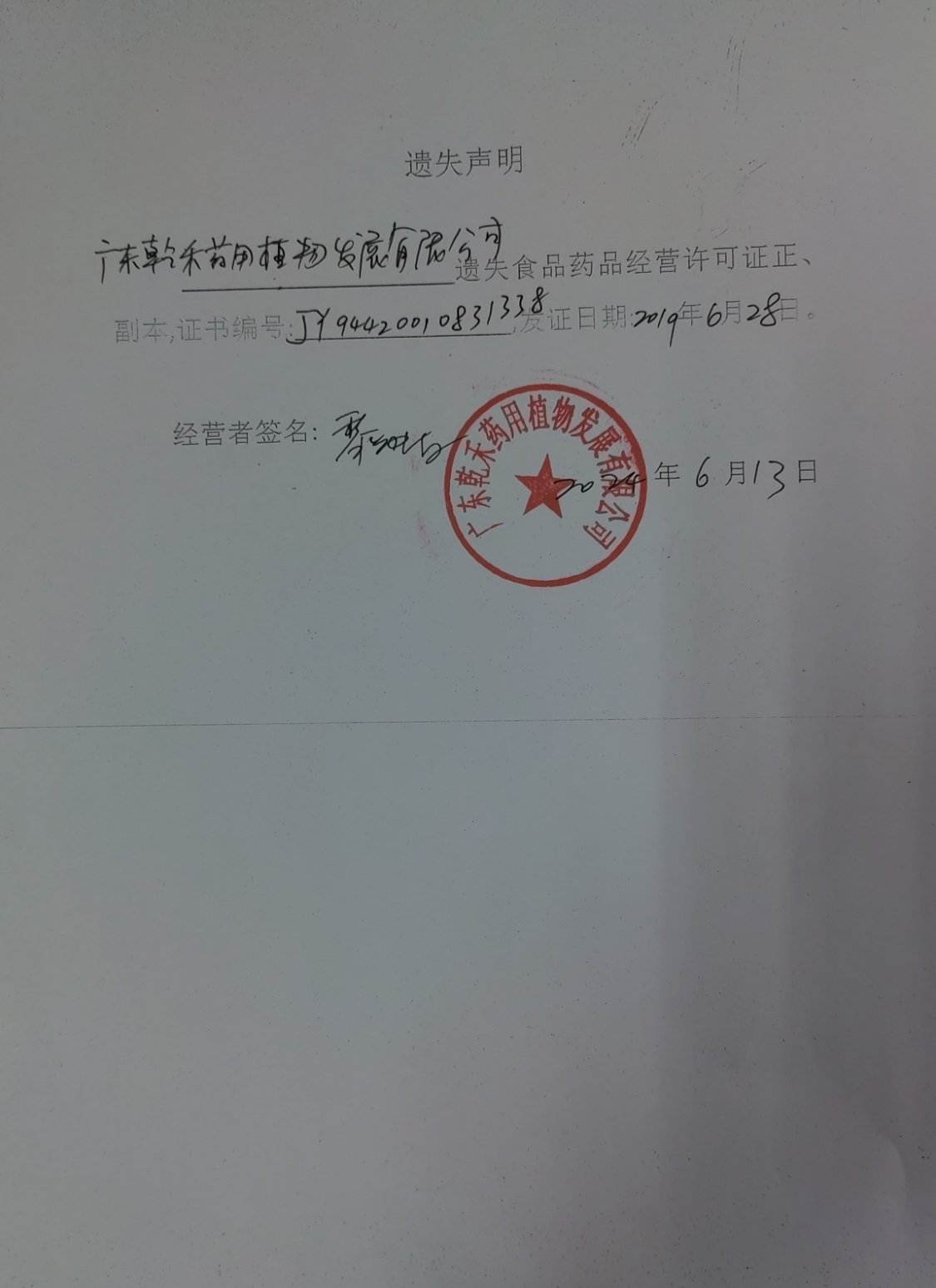 食品药品经营许可证遗失声明(广东乾禾药用植物发展有限公司、中山火炬开发区菜宝百货店、中山火炬开发区顾泉餐饮店(个体工商户)、中山市东恩餐饮店、中山市火炬开发区后记饺子店)