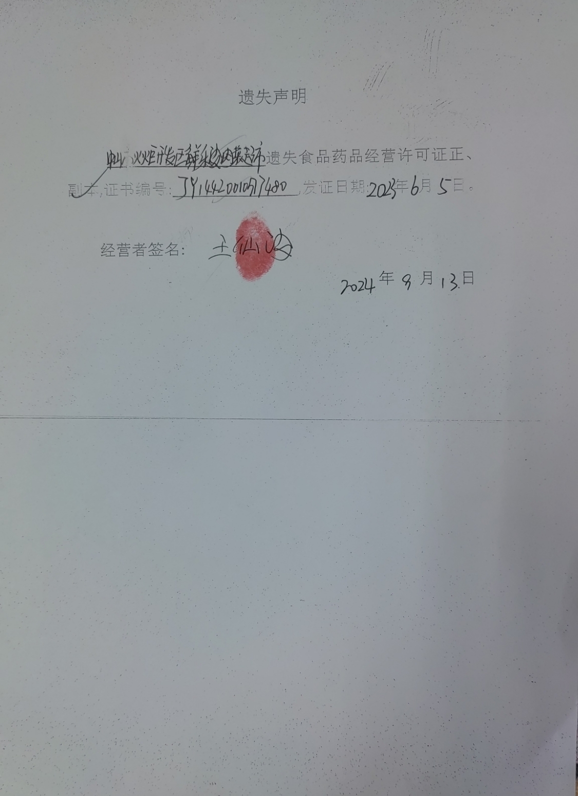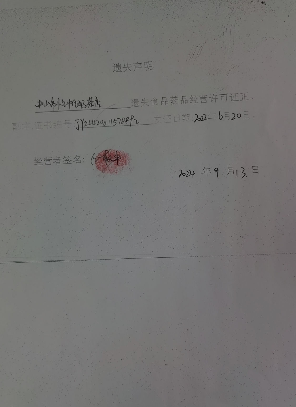 食品药品经营许可证遗失声明(中山火炬开发区鲜乐波肉菜超市、中山市怡帆奶茶店)