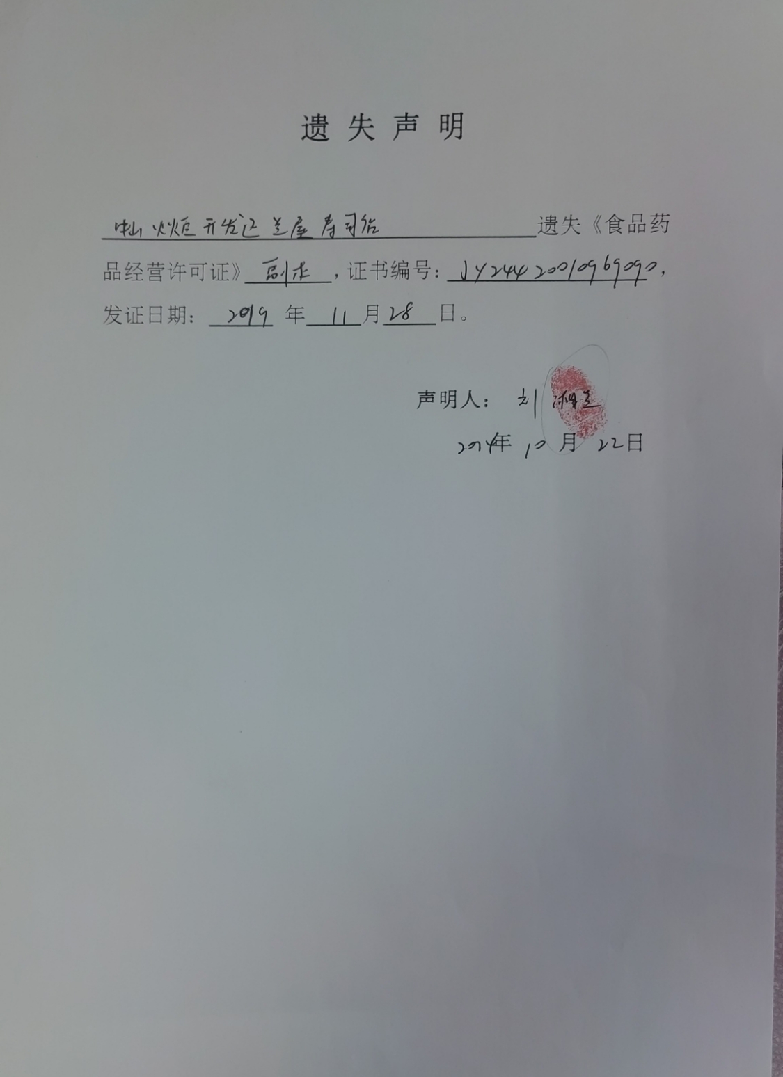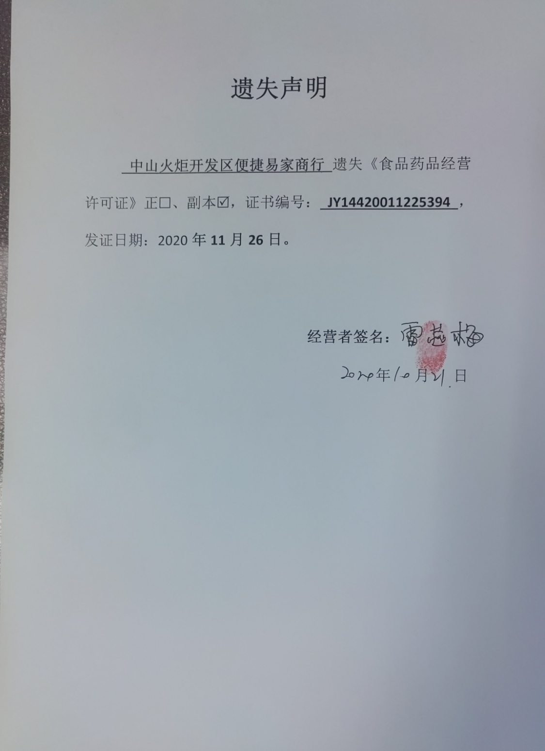 食品药品经营许可证遗失声明(中山火炬开发区兰屋寿司店、中山火炬开发区鸿恩餐饮店、中山火炬开发区便捷易家商行)