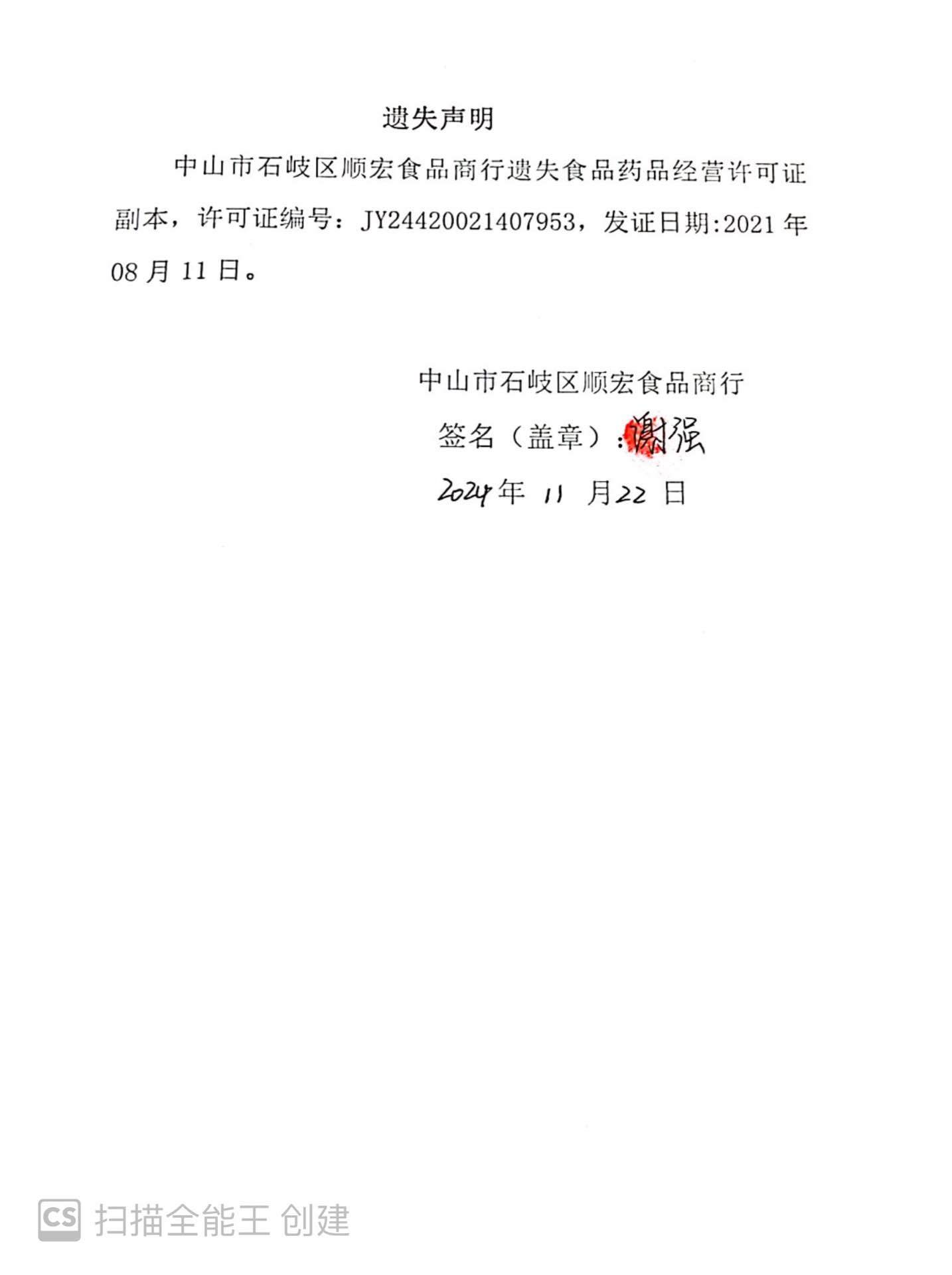 食品药品经营许可证遗失声明【东莞市柏卡眼镜有限公司中山分公司、中山市石岐区顺宏食品商行、中山市淘禾餐饮店(个体工商户)】