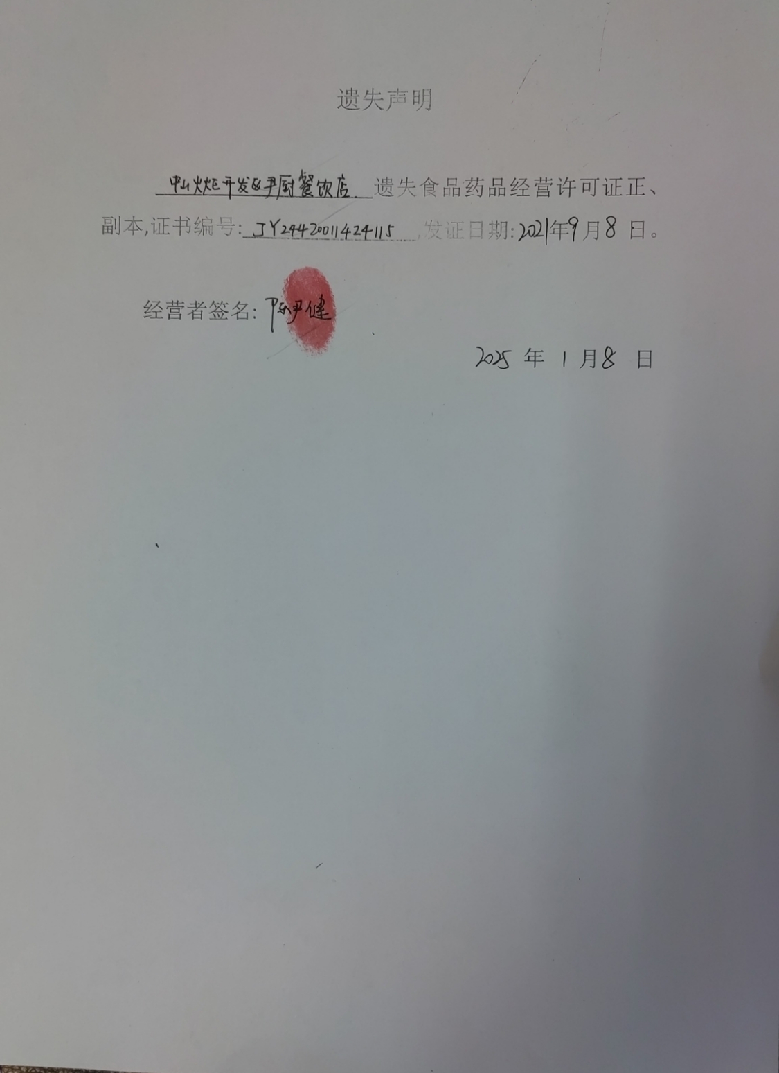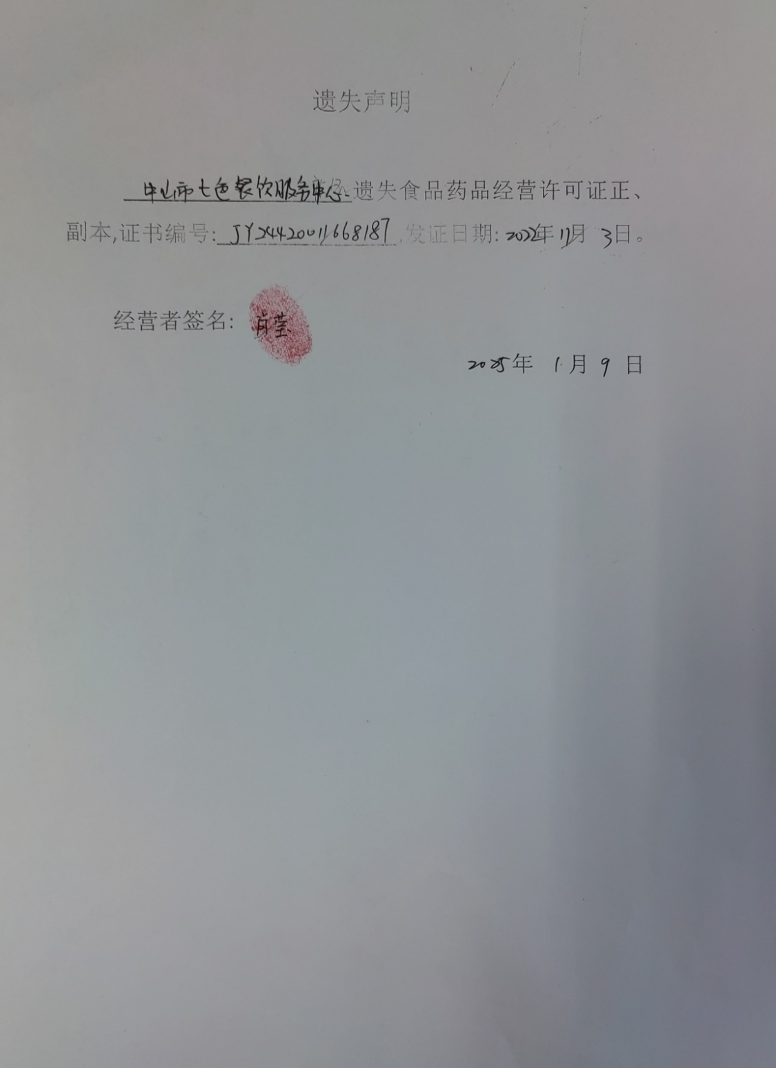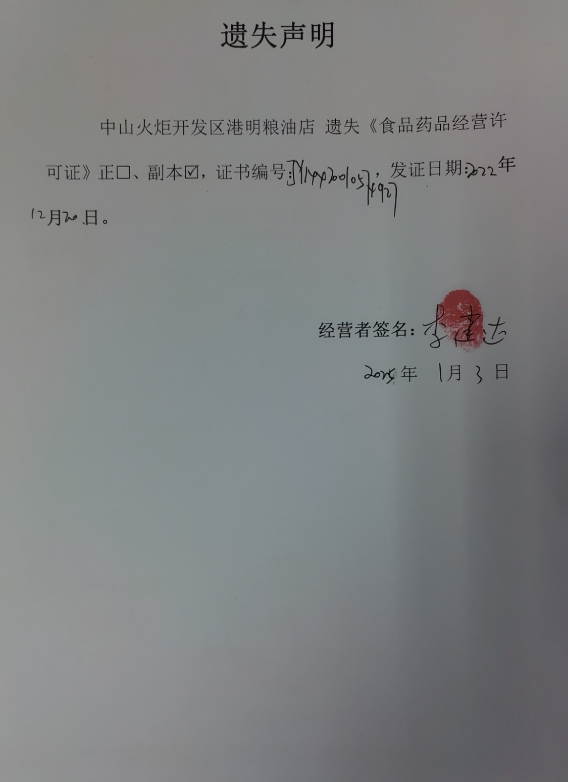 食品药品经营许可证遗失声明【中山火炬开发区港明粮油店、中山火炬开发区尹厨餐饮店、中山市七色餐饮服务中心、中山市瑞翔医疗器械服务部、中山市易维珍餐饮店(个体工商户)】