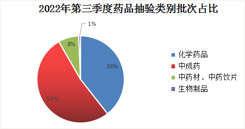 2022年第三季度,全市抽验主体数148家,检验药品289批次。按药品类别分,抽检化学药品114批次,中成药151批次,中药材、中药饮片22批次,生物制品2批次;按抽验环节分,抽检生产环节30批次,经营环节197批次,使用环节62批次。详见附表5。