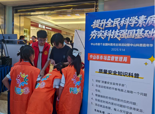 9月14日下午,以“提升全民科学素质 夯实科技强国基础”为主题的中山市首个全国科普月主场活动暨中山科普嘉年华在远洋大信举行。其中,市市场监管局聚焦青少年日常接触的文具、玩具、服装等用品质量安全,在活动现场设置质量安全知识科普摊位。