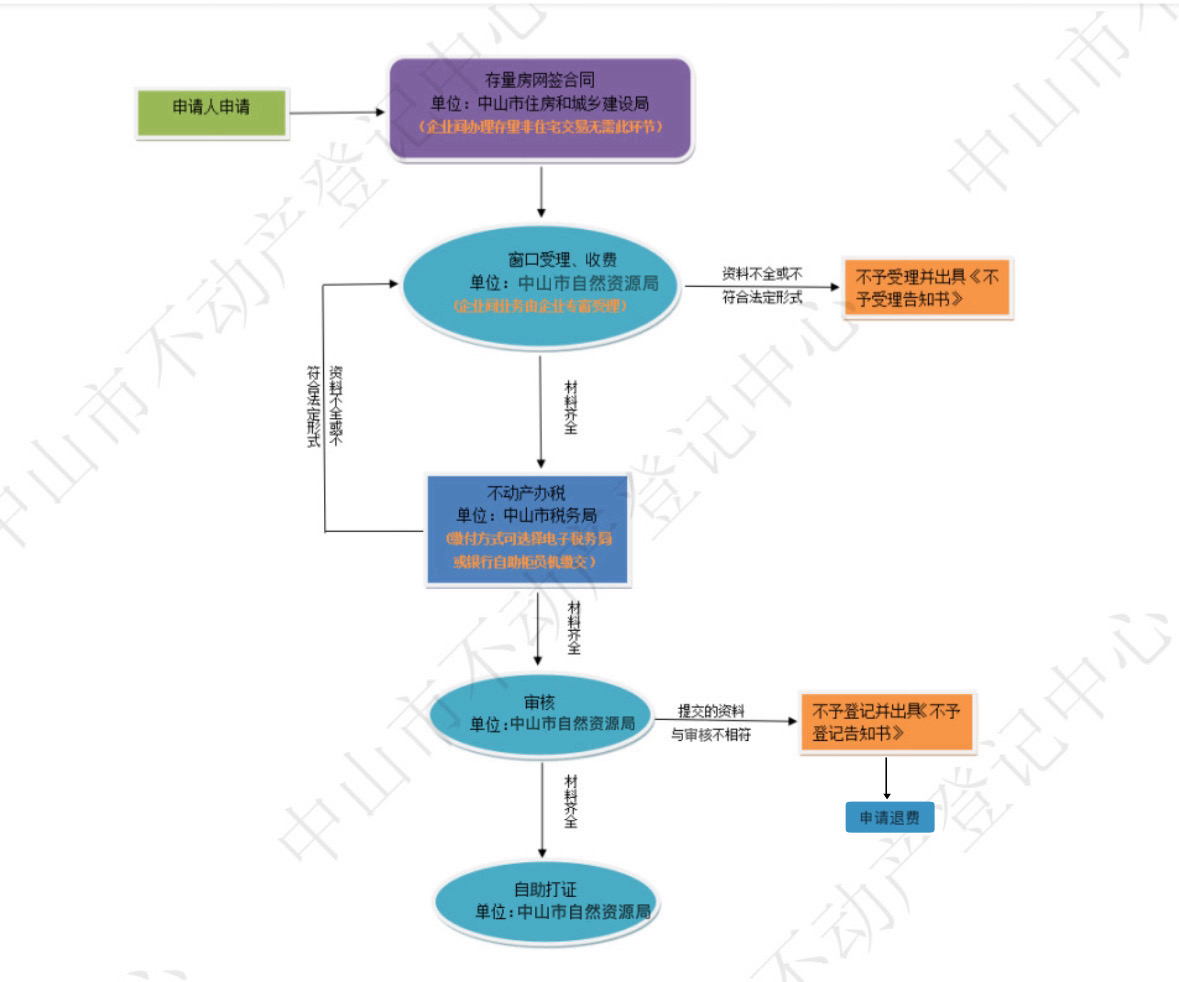 申请人在市行政服务中心A区办事大厅现场办理的城区(包括石岐、东区、西区、南区)二手房转移登记(非单家独户)业务。