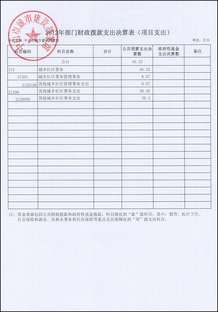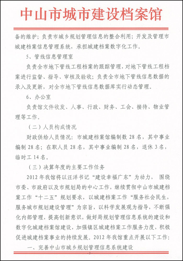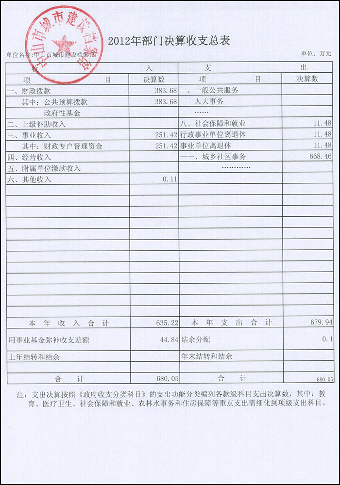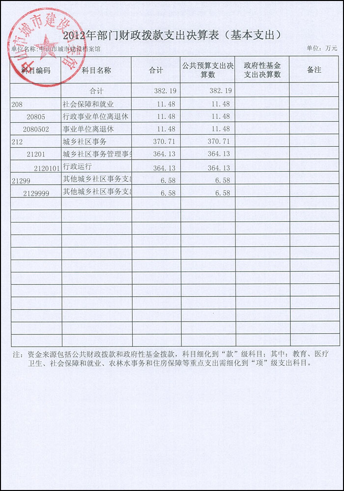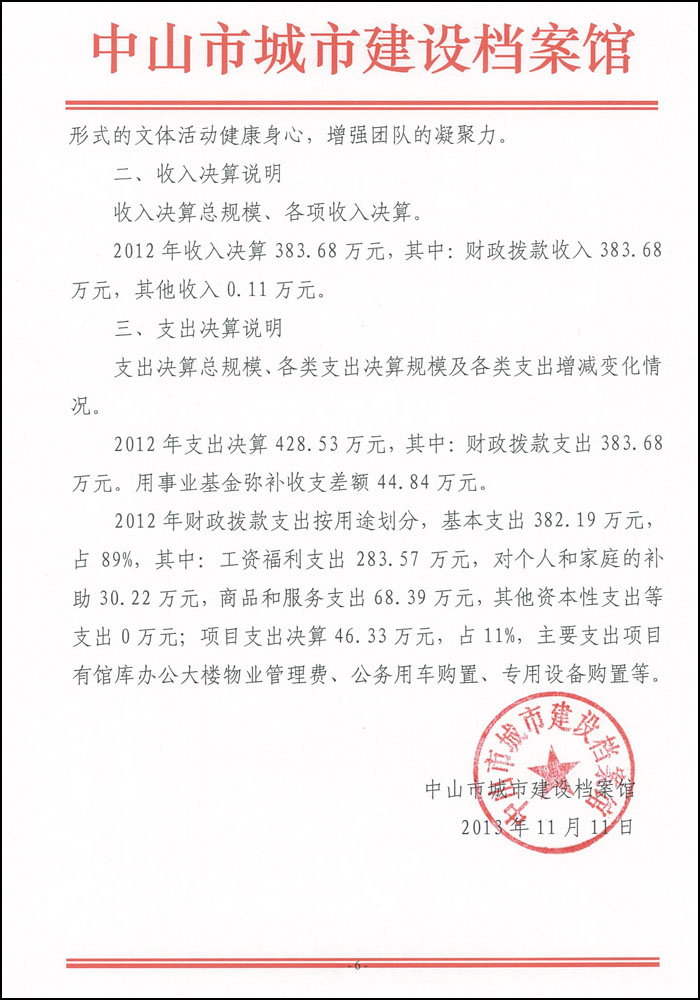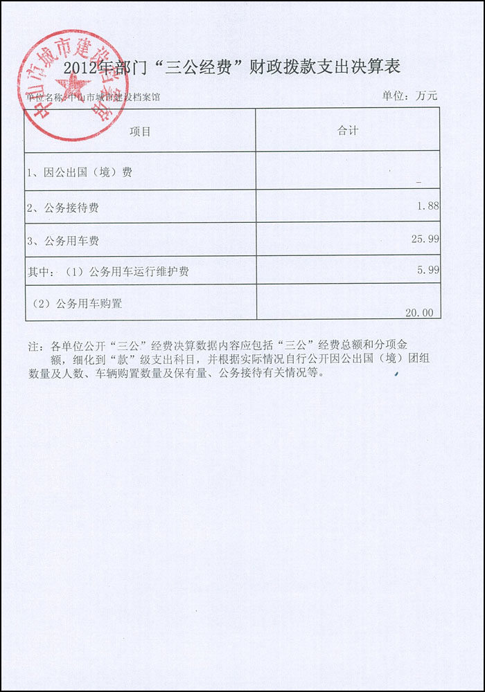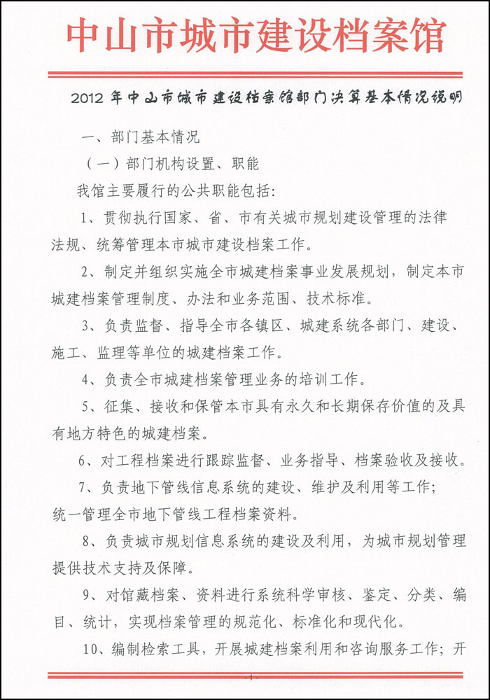 2012年中山市城市建设档案馆部门决算基本情况说明