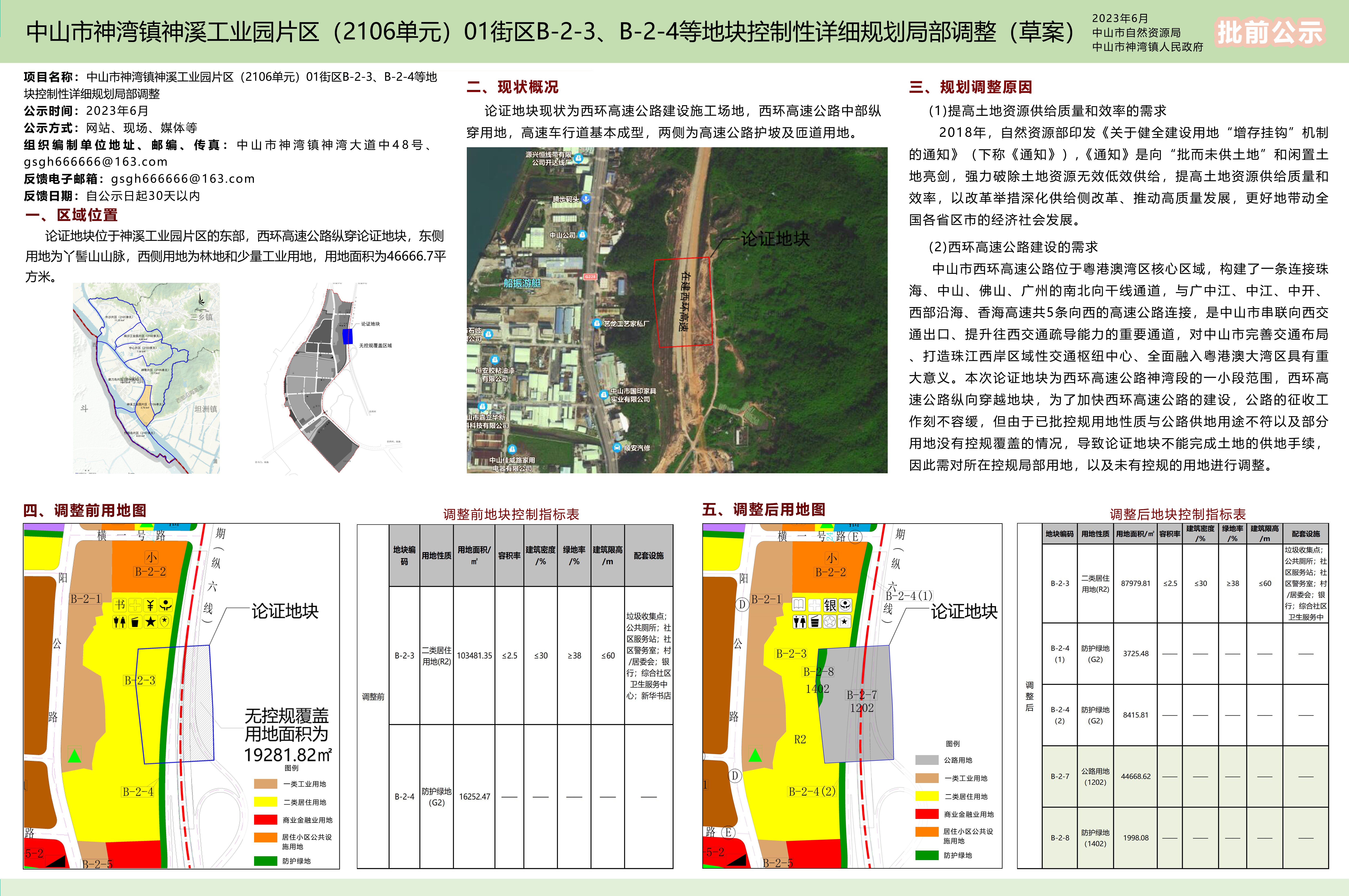 附件:《中山市神湾镇神溪工业园片区(2106单元)01街区B-2-3、B-2-4等地块控制性详细规划局部调整》草案