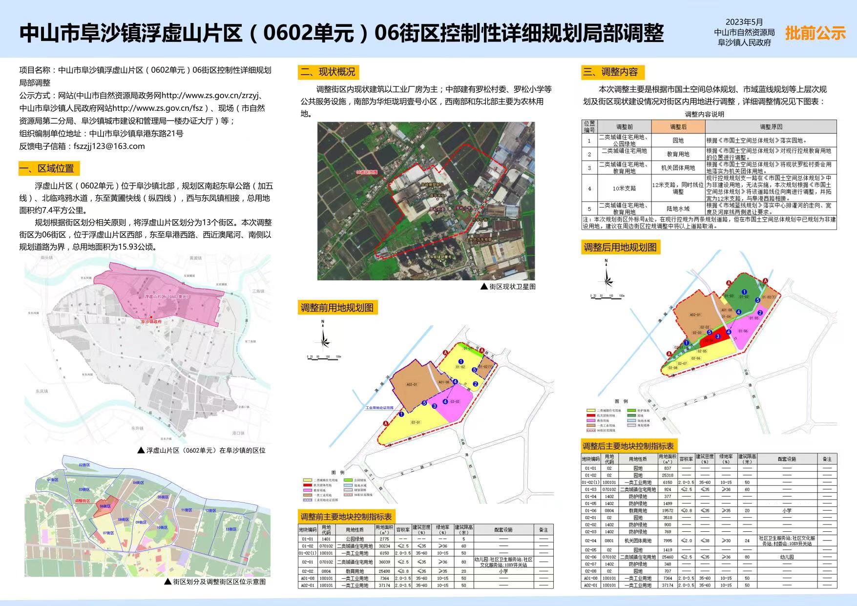 附件:《中山市阜沙镇浮虚山片区(0602单元)06街区控制性详细规划局部调整》公示版