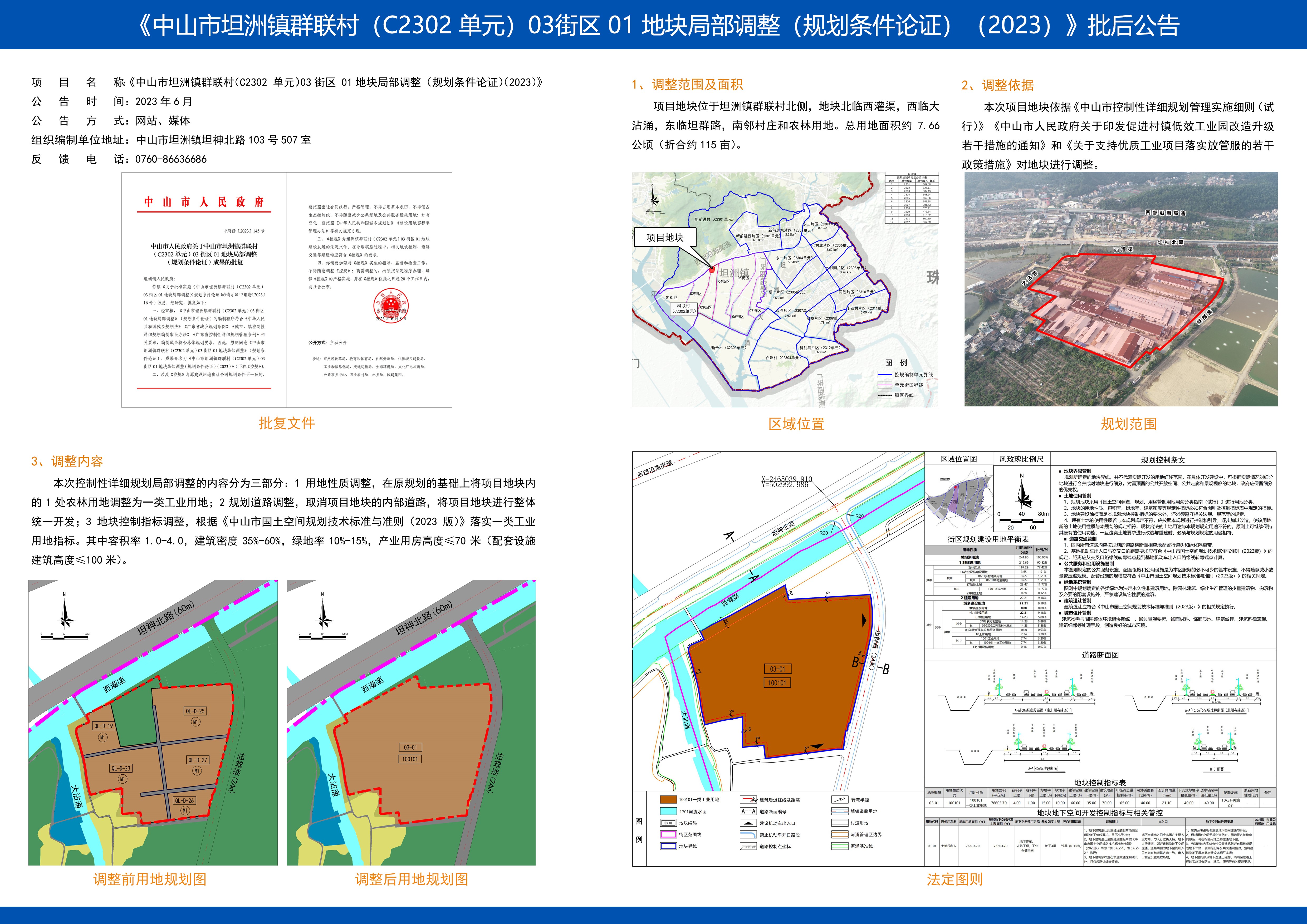 附件1:《中山市坦洲镇群联村(C2302单元)03街区 01地块局部调整》(规划条件论证)批后公告