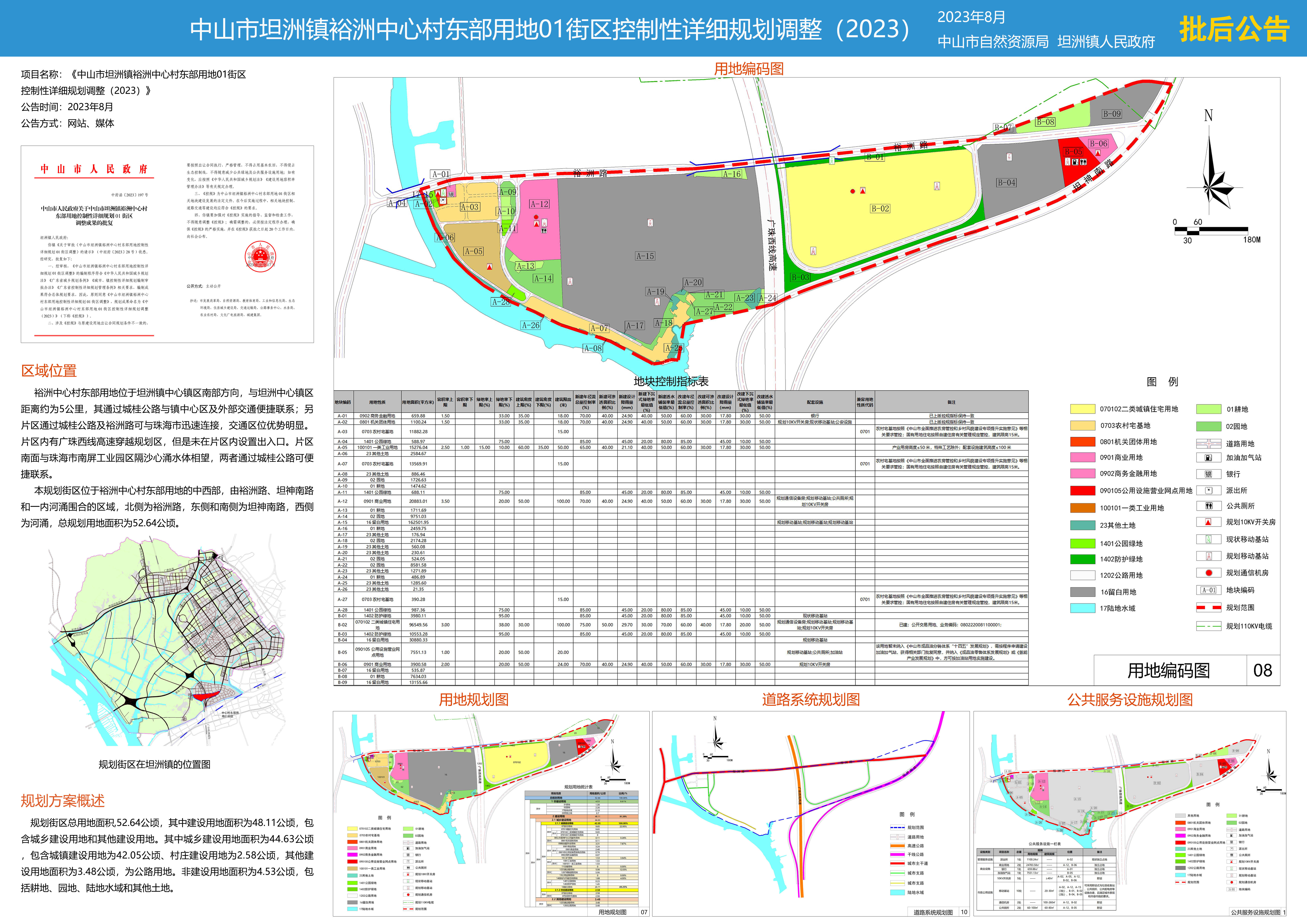 附件:《中山市坦洲镇裕洲中心村东部用地01街区控制性详细规划调整(2023)》批后公告