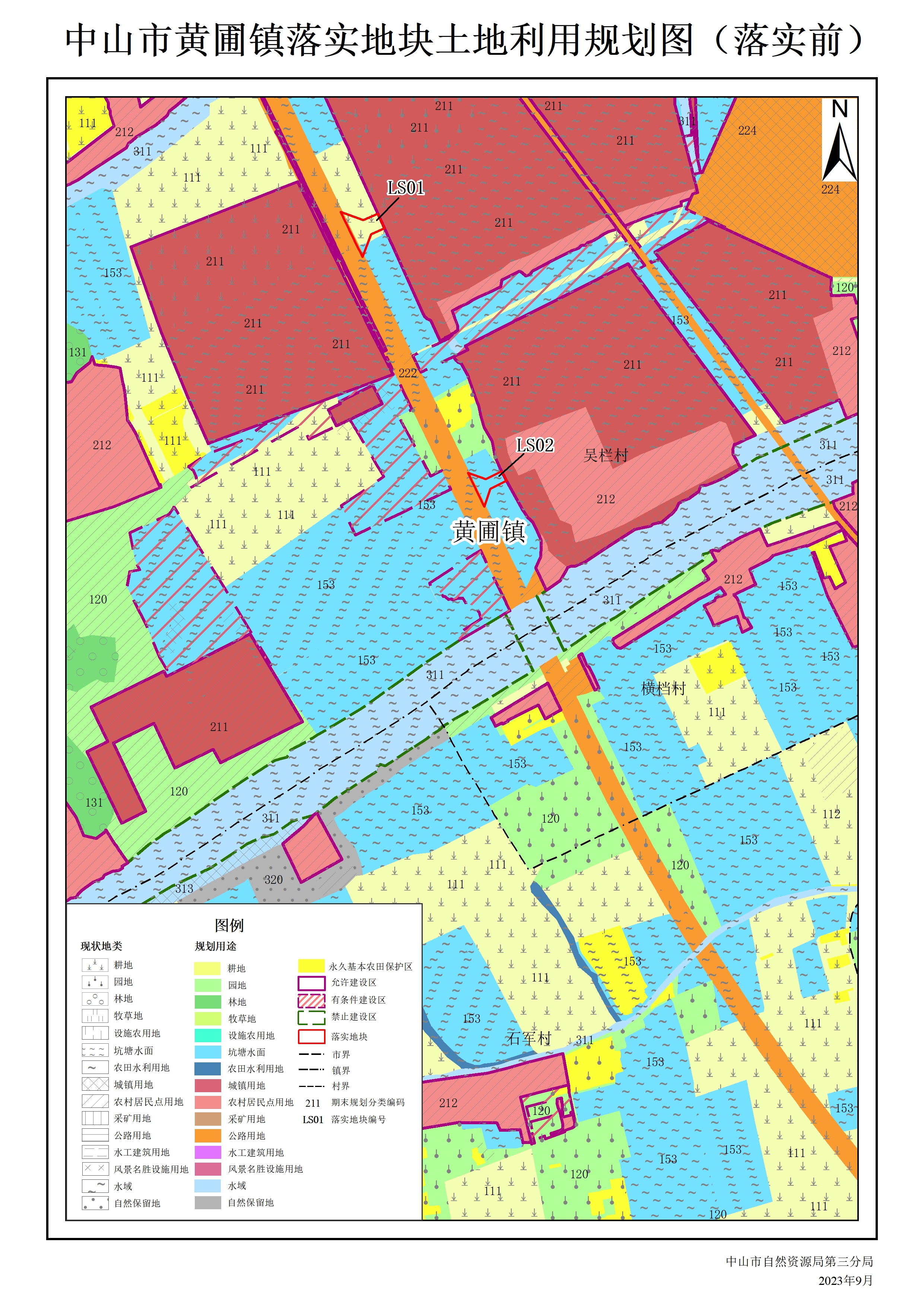 附件:1. 中山市黄圃镇落实地块土地利用规划图(落实前)