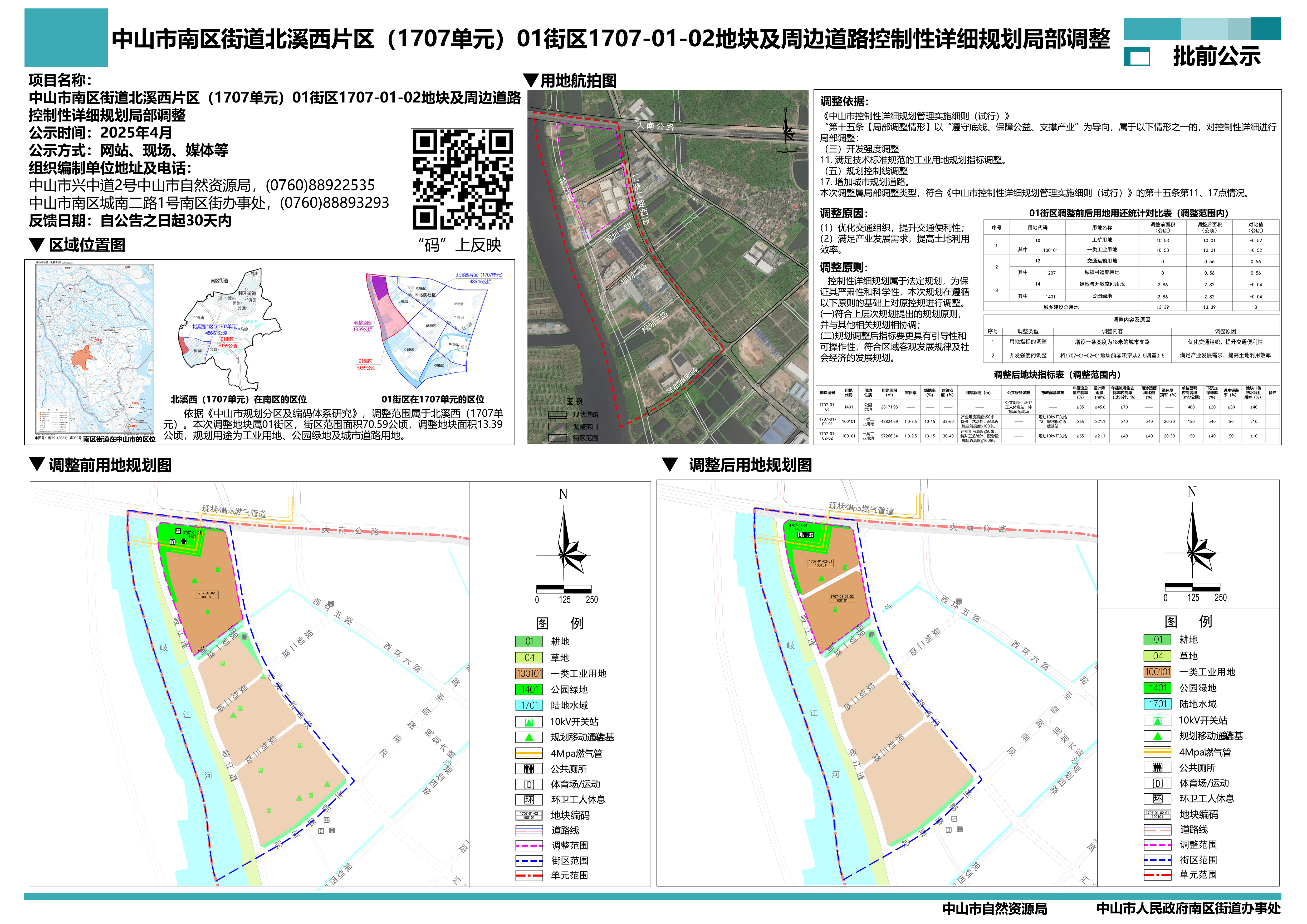 《中山市南区街道北溪西片区(1707单元)01街区1707-01-02地块及周边道路控制性详细规划局部调整》草案已完成。根据《中华人民共和国城乡规划法》等法律法规要求,现对该草案予以公示。