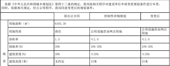 关于中山市玉泉酒店商住转公用设施营业网点用地规划条件变更公示的通告