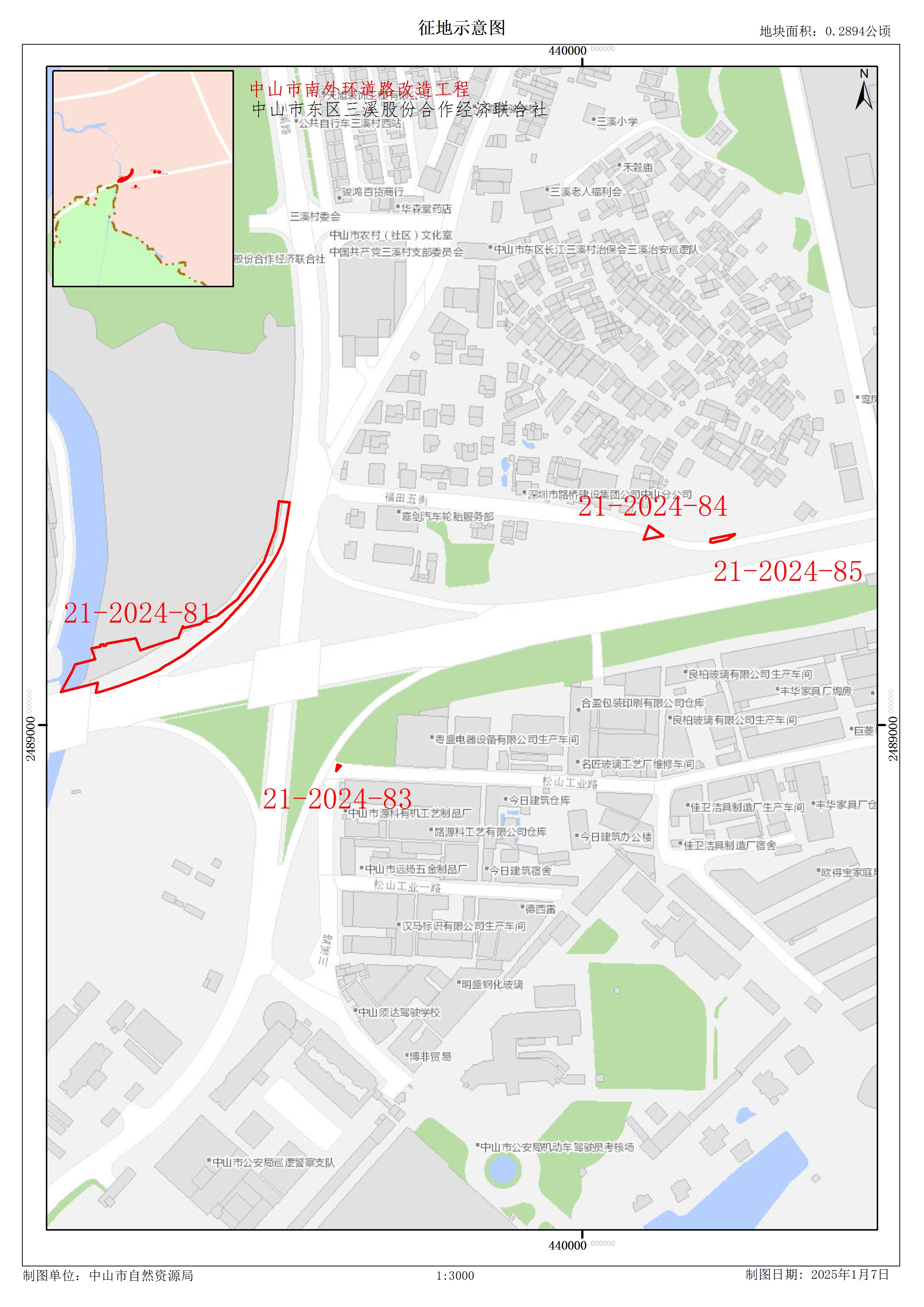 根据《中华人民共和国土地管理法》及《中华人民共和国土地管理法实施条例》的规定,2024年10月15日,经广东省人民政府同意,以粤府土审(13)〔2024〕145号批准我市征收中山市东区三溪股份合作经济联合社农民集体用地0.2894公顷为国有土地。现将有关事项公告如下: