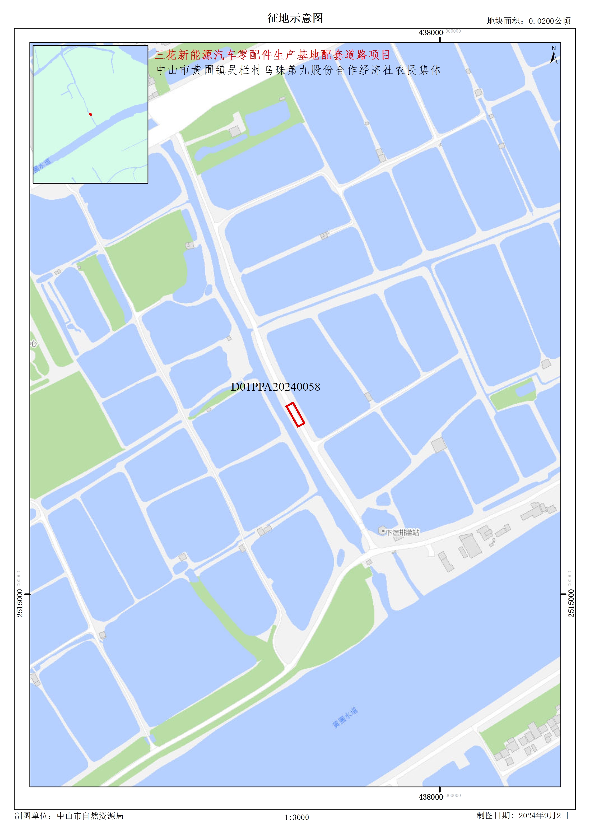 中山市黄圃镇吴栏村乌珠第九股份合作经济社农民集体土地0.0200公顷,其中其他农用地0.0165公顷、未利用地0.0035公顷,位于中山市黄圃镇吴栏村,具体范围及现状见附图(如需获取更为详细的地理位置和四至信息,请询公告所示联系人)。