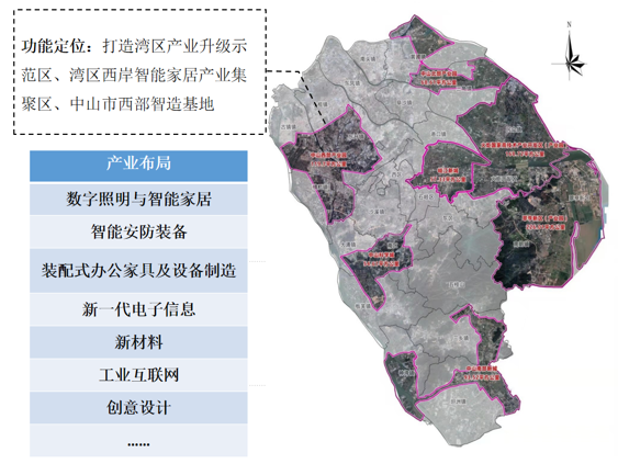 重点发展数字照明与智能家居、智能安防装备、装配式办公家具及设备制造、新一代电子信息、新材料等产业,推动工业互联网、创意设计等生产性服务业发展,打造湾区产业升级示范区、湾区西岸智能家居产业集聚区、中山市西部智造基地。