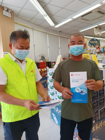 志愿者们到石岐街道南部片区综合党群服务中心附近药房、超市、食店、移动营业厅等商铺,派发《关于进一步加强社会面疫情防控措施的通告》《外地返来中山需报备》《中山市行政处罚信用修复和“信易贷”服务指南》等宣传资料,向群众宣传介绍疫情防控需要执行的措施、信用体系建设相关文件精神、社会信用的内涵、失信的危害等内容,引导居民根植“守信光荣、失信可耻”理念,树立诚信形象、争做守信公民。