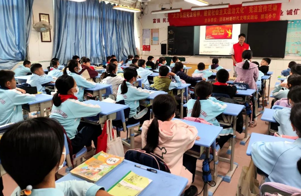 课堂上,志愿者围绕今年国家宪法日主题“大力弘扬宪法精神 建设社会主义法治文化”展开宣传。他向学生提出“谁知道今年是第几个国家宪法日?”作为开篇,讲述普通人与宪法的故事,以通俗易懂的语言,讲解国家宪法日的由来及宪法的意义,同时结合故事中主人翁的成长历程,向青少年讲授宪法是国家的根本大法,是治国安邦的总章程,宪法与大家的生活息息相关,一直陪伴着我们,保护着我们,一切有法可依。