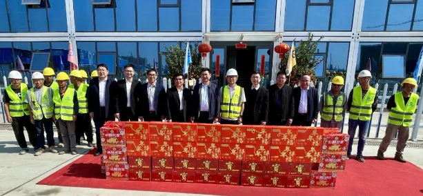 梁泳辉代表镇党委、镇政府向春节假期仍奋斗在一线的建设者送去节日慰问,祝愿建设者们在中山过好年。徐勇哲及杨剑辉勉励施工方在加快建设进度的同时,注重品质、关注安全,努力将项目打造成北部制造业基地的示范工程、项目标杆,推动中山经济高质量发展。